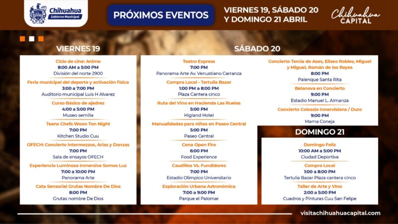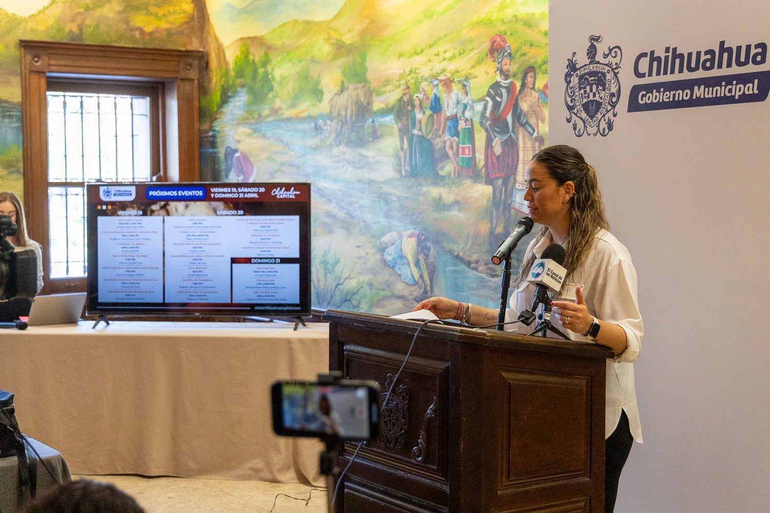 Chihuahua, Chih. A 18 de abril de 2024.- La directora del Instituto de Cultura del Municipio, Fernanda Bencomo, dio a conocer la agenda cultural que se tiene desde el Gobierno Municipal para las familias capitalinas, a fin de que disfruten de estos espacios y actividades.