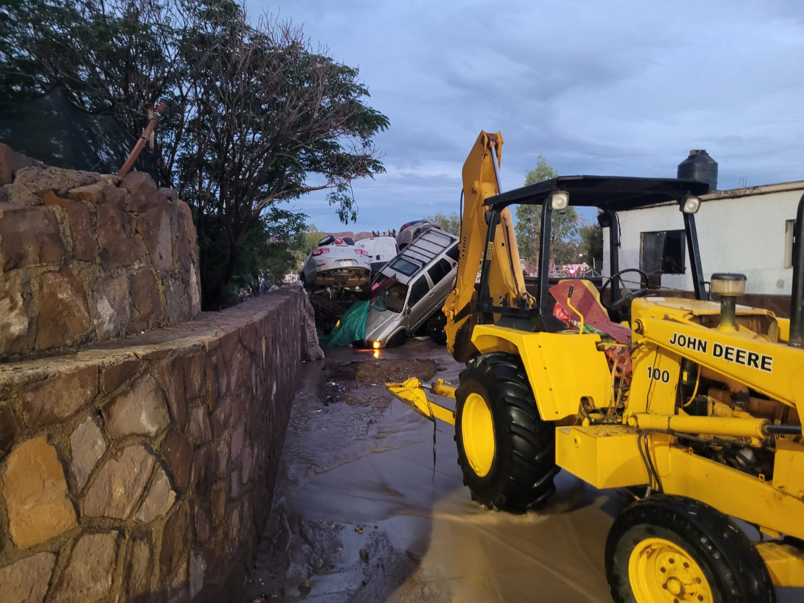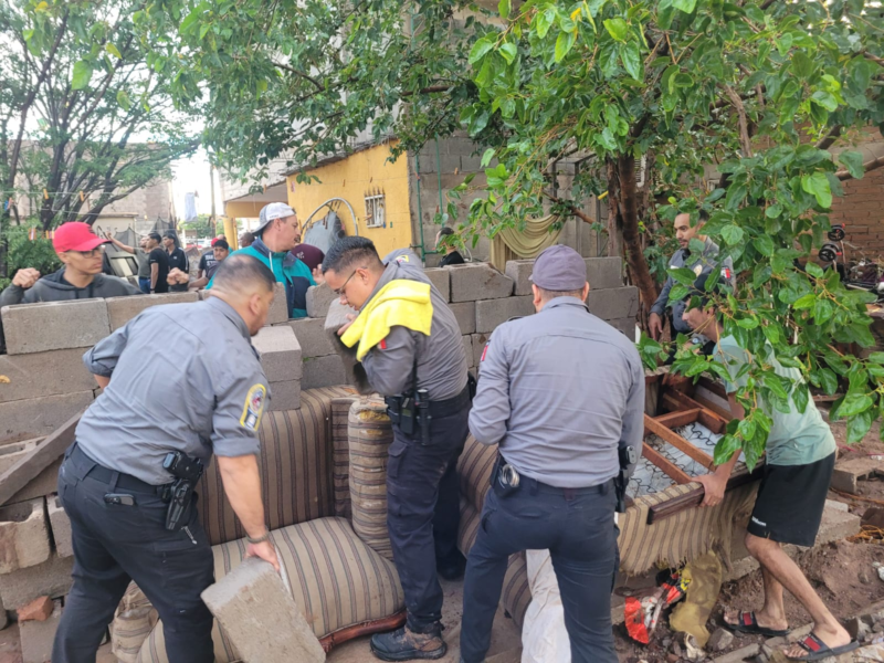 En la colonia El Porvenir, la corriente arrastró vehículos que quedaron amontonados frente al Panteón Municipal Número 3, donde también se acumuló escombro, basura y lápidas desplazadas por la fuerza del agua. Las avenidas Industrias y Desierto de Mojave sufrieron daños en el pavimento, lo que obligó al cierre temporal de la circulación mientras equipos de Rescate Urbano trabajaban en la zona para despejar los escombros y permitir el paso de los vehículos de emergencia.