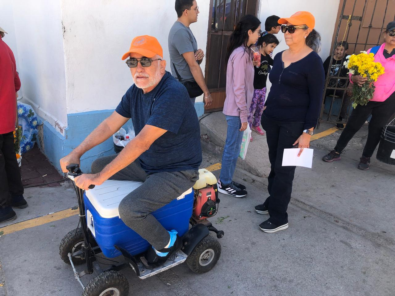 Entre las tradicionales visitas del Día de Muertos en el Panteón de Dolores, destaca la presencia de Martín Piñón, quien ha convertido la adversidad en ingenio al recorrer los pasillos del camposanto en un peculiar vehículo adaptado, sumándose a los esfuerzos municipales por hacer más accesible esta fecha conmemorativa.