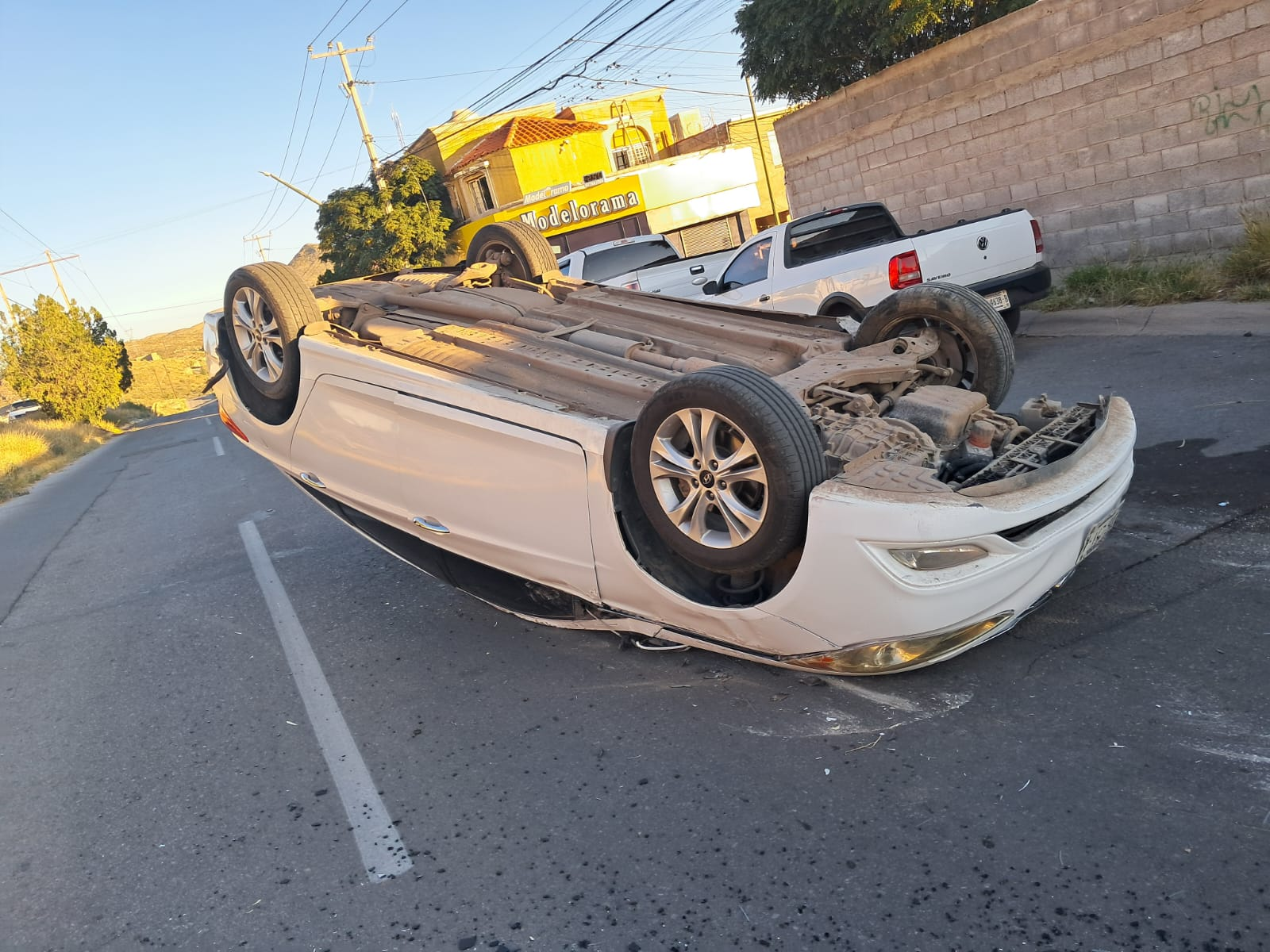 • Vuelca vehículo tras chocar contra auto estacionado al norte de la ciudad