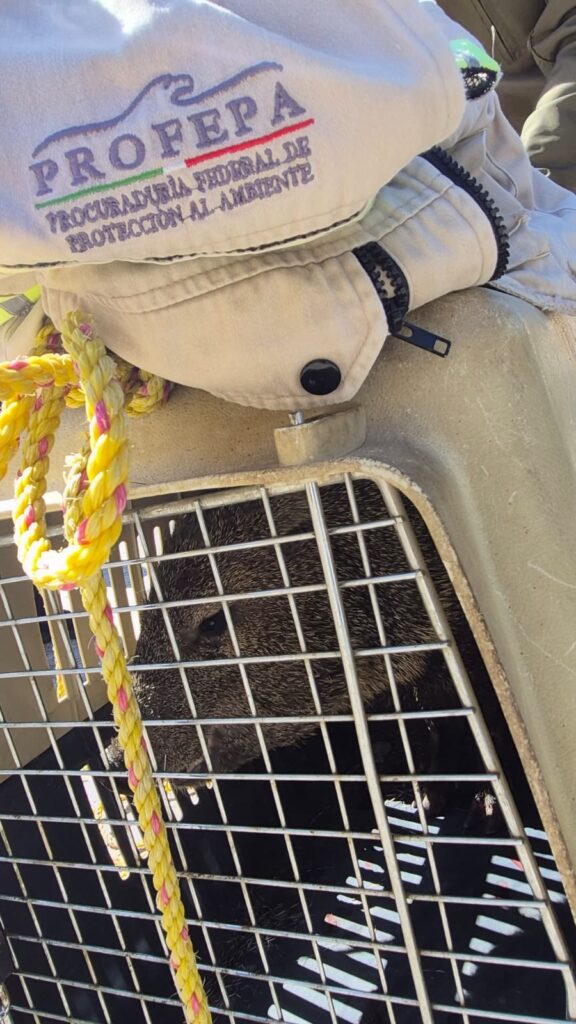 Los hechos ocurrieron luego de que el animal fuera detectado corriendo por diversas vialidades, lo que derivó en una persecución que no involucró a delincuentes, sino a un jabalí que finalmente ingresó al interior del canal del Teófilo Borunda. Fue a la altura de la calle 25 donde, tras una larga y complicada carrera, los agentes lograron capturarlo.