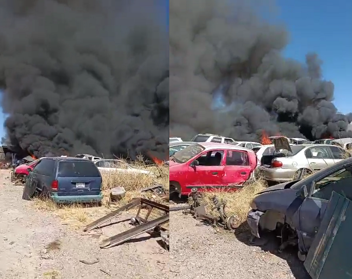 🎥Voraz incendio consume yonke en Granjas del Valle; columna de humo alerta a vecinos