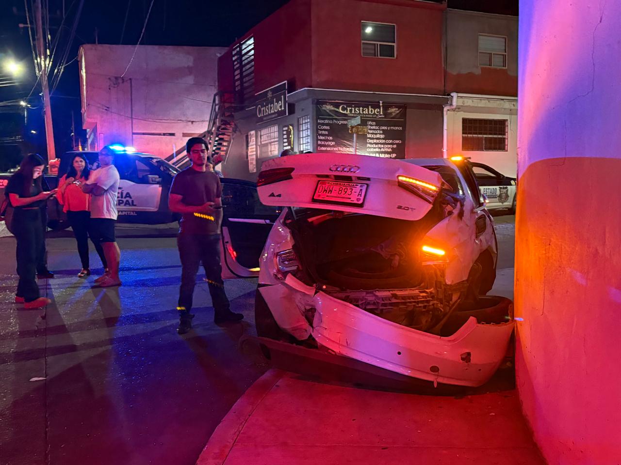 De acuerdo con los primeros reportes, un vehículo Audi blanco circulaba en sentido sur a norte por la calle Egipto y redujo su velocidad para incorporarse a la izquierda sobre la calle Álamos. En ese momento, una pickup Ram negra que transitaba detrás impactó por alcance al Audi, proyectándolo contra la barda de un domicilio.