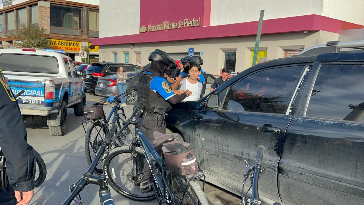 Policías municipales del Grupo Beta se hicieron cargo de llevar a cabo la detención del joven intransigente y posteriormente lo abordaron a una patrulla para su traslado y puesta a disposición del Juez en turno.