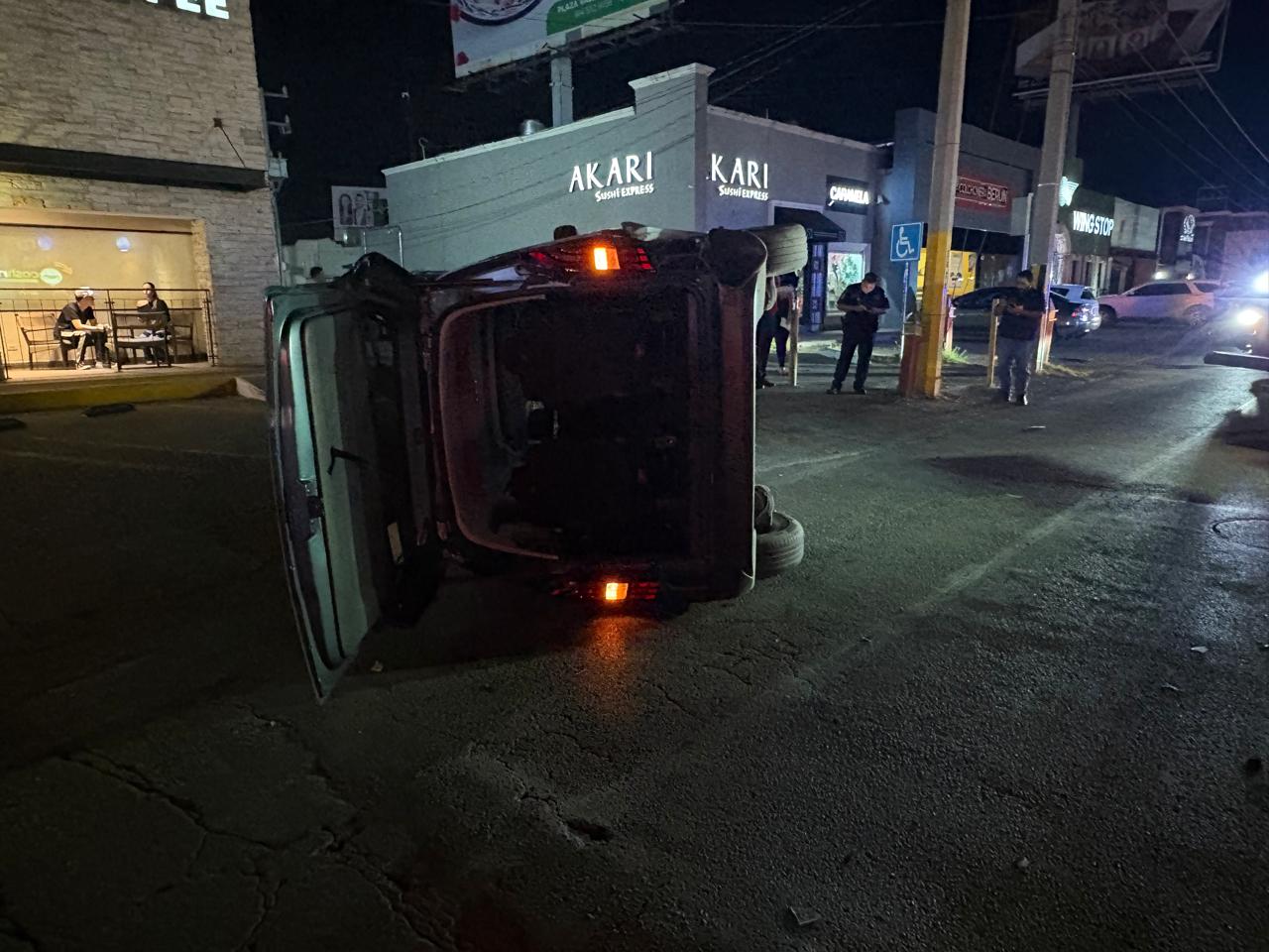 Un aparatoso accidente con volcadura se registró la tarde de este jueves en el cruce de la avenida Ortiz Mena y Mirador, luego del impacto entre un Mazda 3 color guinda y una camioneta Peugeot.