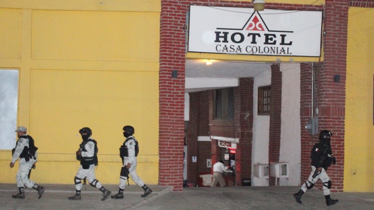 Personal del Instituto Nacional de Migración aseguró a varias personas migrantes que se encontraban hospedadas en el Hotel Casa Colonial, ubicado sobre el bulevar Juan Pablo II.
