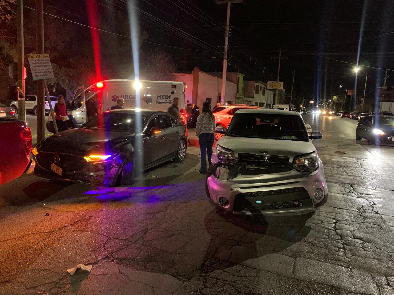 Paramédicos de URGE atendieron a los tripulantes de dos automóviles que se vieron involucrados en un accidente registrado en calles de la colonia Santo Niño.