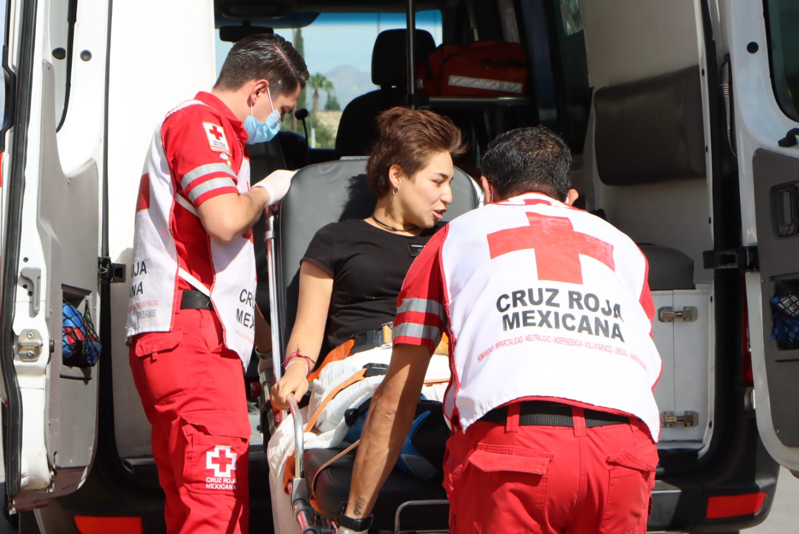Los paramédicos la trasladaron a un hospital para su mayor valoración médica.