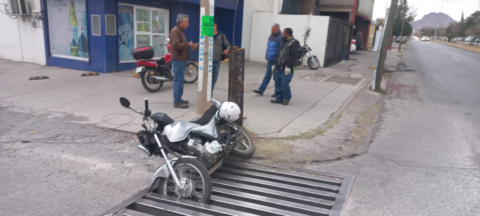 Un motociclista viajaba por la Heroico y al tomar la Yucatán cayó su llanta delantera en una alcantarilla. Sufrió el motociclista algunas lesiones por este accidente.