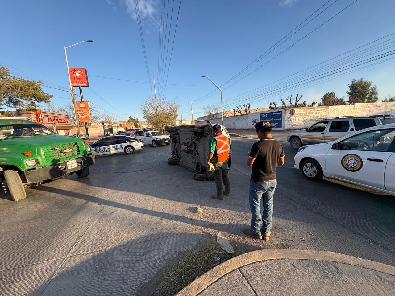 Un aparatoso choque con volcadura se registró en el cruce de la avenida Lombardo Toledano y calle Quinta, en la colonia Aeropuerto, luego de que una conductora cortara la circulación a otro vehículo.