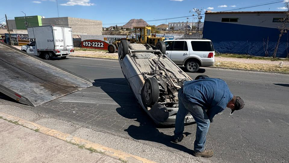 Choque con volcadura provoca caos vial en la Silvestre Terrazas