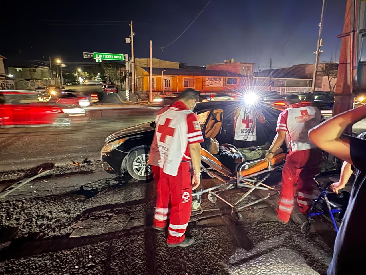 Un accidente vial registrado en el cruce de la avenida Fuentes Mares y calle Esmeralda dejó como saldo a una persona con lesiones de consideración, además de daños en infraestructura urbana que provocaron la interrupción del suministro eléctrico en la zona.