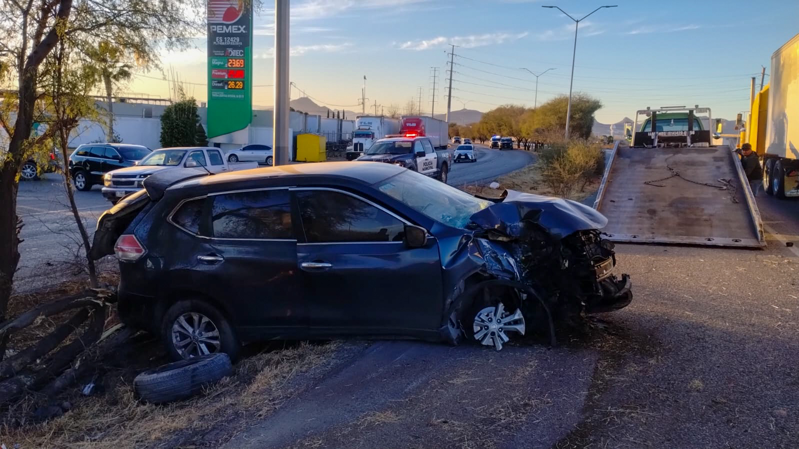 En el vehículo viajaban cuatro personas: dos adultos y dos menores de edad, de 4 y 9 años. Este último resultó con lesiones de consideración, por lo que fue atendido por paramédicos y trasladado a un hospital para recibir atención médica especializada.