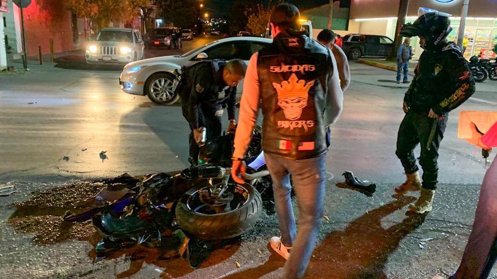 El accidente ocurrió cuando ambos vehículos viajaban por la avenida 20 de Noviembre. El conductor de la Nissan cambió de carril y por el acceso de velocidad en la que viajaba el motociclista no alcanzó a frenarse. Derrapó y chocó en la parte trasera de la pick up.