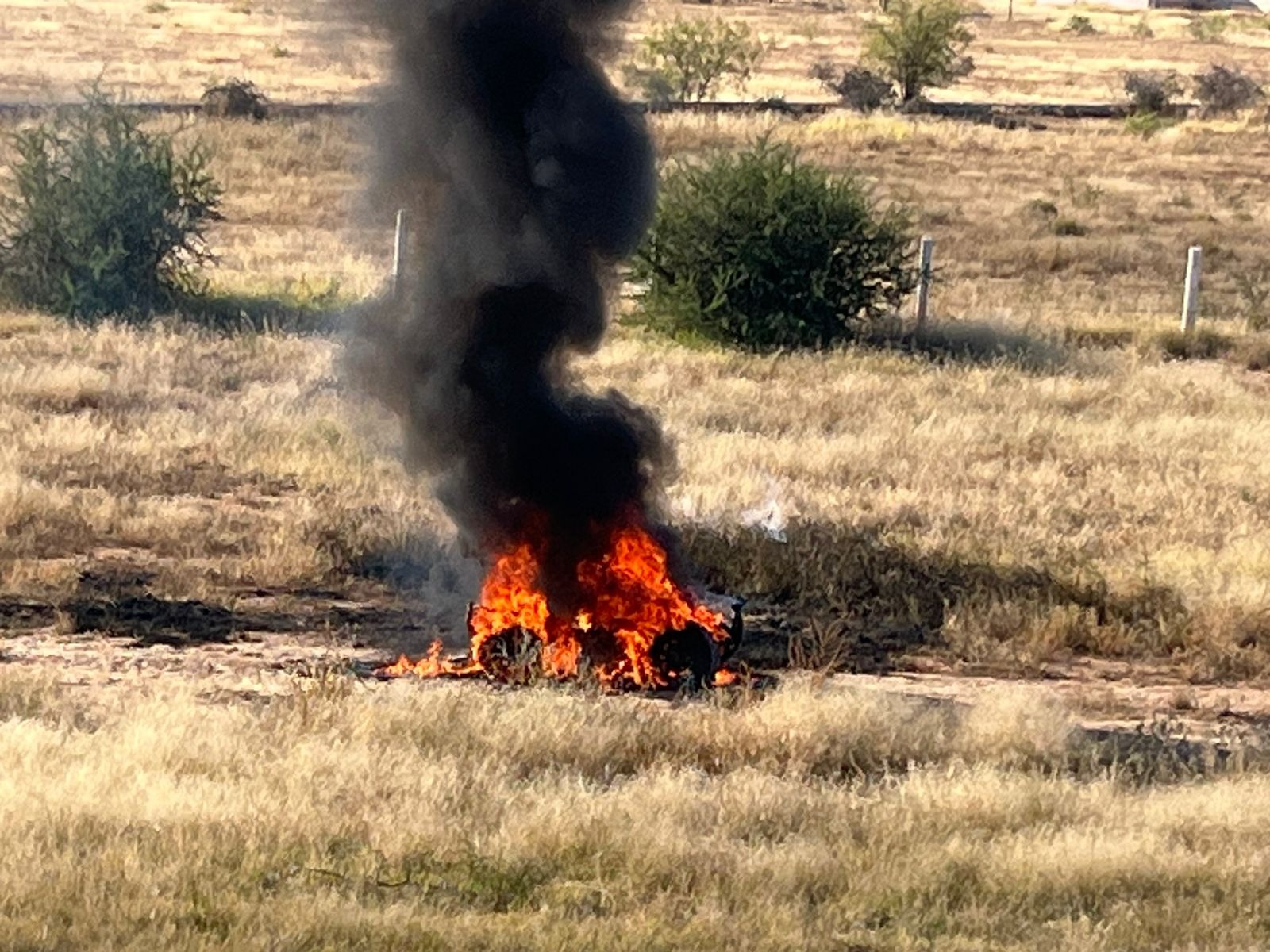 Cuatrimoto de 180 mil pesos queda calcinada en el nuevo libramiento oriente de Chihuahua