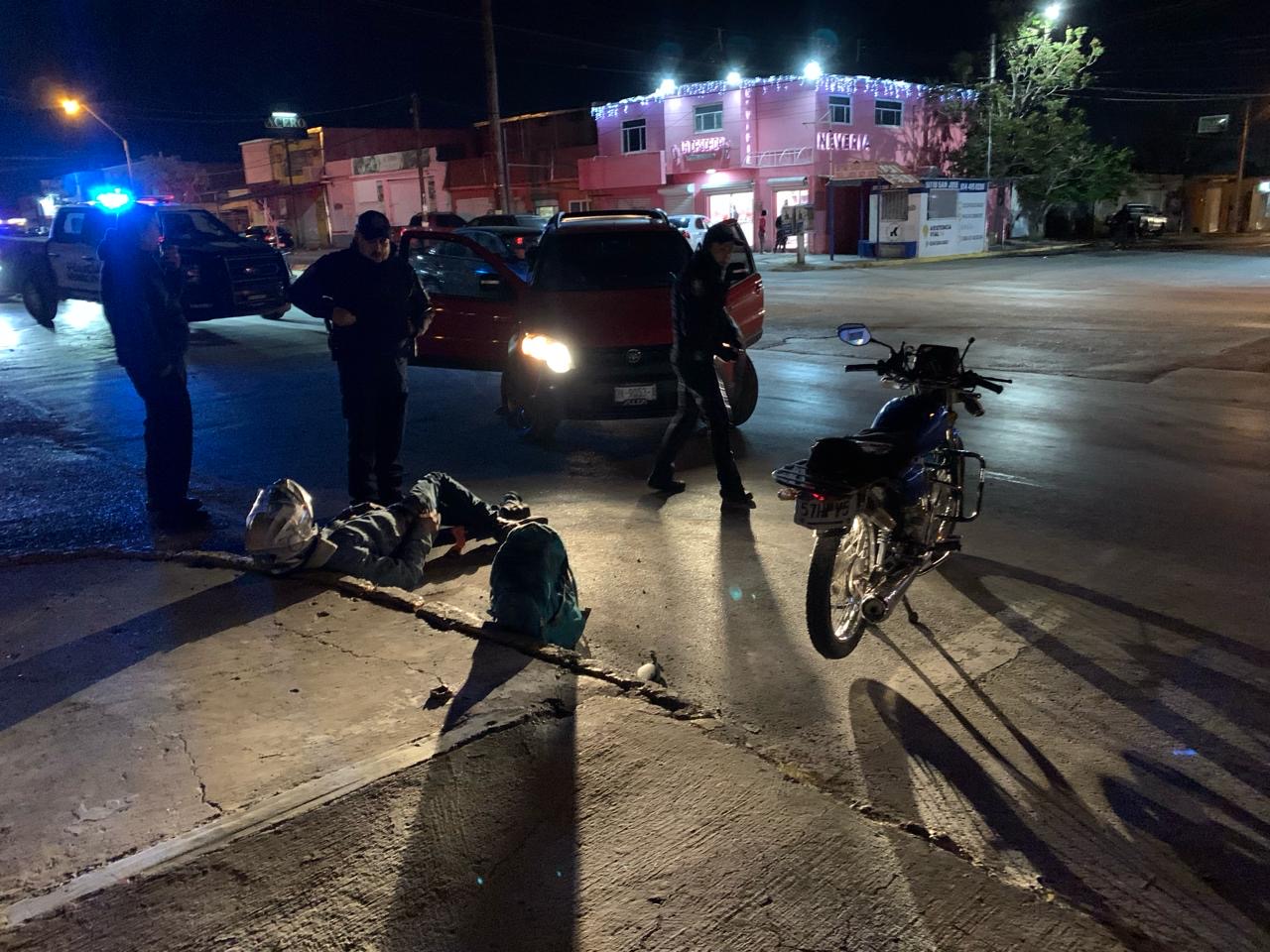 Circulaban ambos vehículos por la avenida Juárez, el motociclista lo hacía a bordo de su Kurazai en sentido de oeste a este, y la pick up en el opuesto.