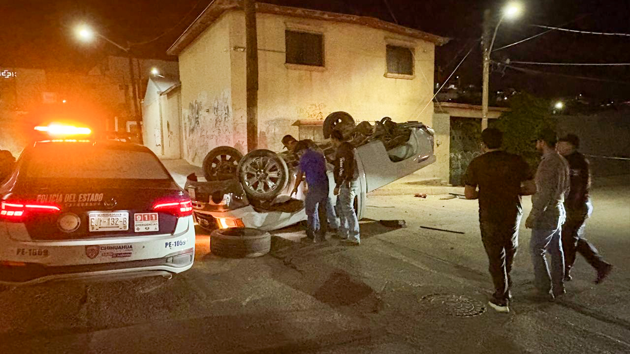 Dos hombres resultaron lesionados luego de que la pick up GMC Sierra en la que viajaban cayera más de siete metros y terminara volcada entre las calles Chihuahua y 26 de Julio, en la colonia 2 de Octubre.