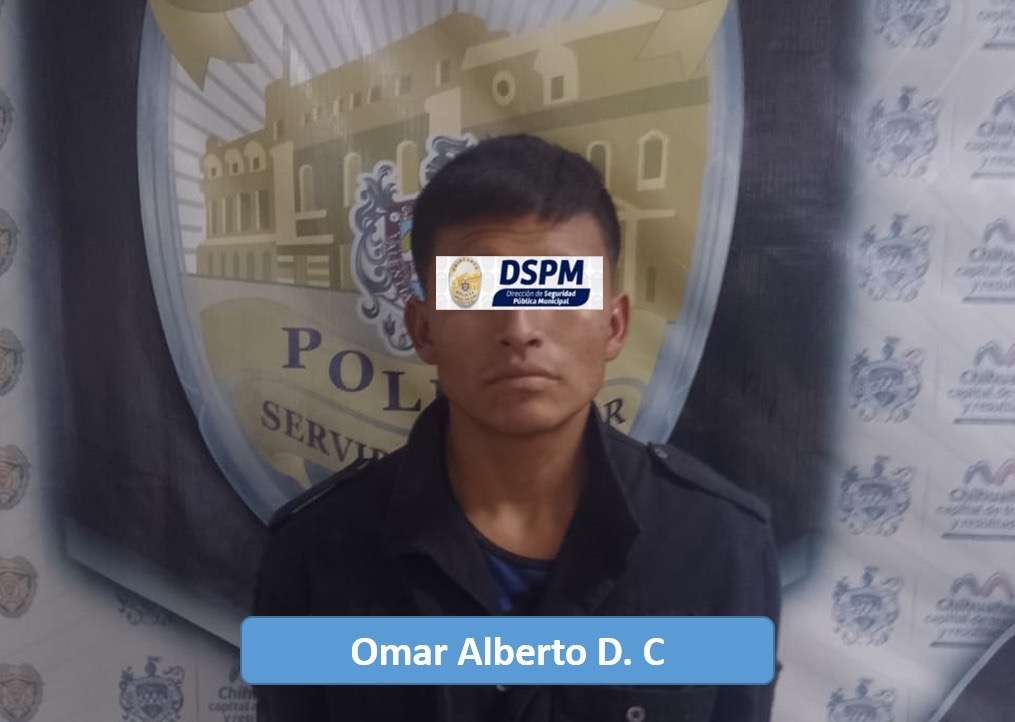 Chihuahua, Chih., a 5 de diciembre de 2024.-*_ Agentes de la Policía Municipal detuvieron a un hombre que hace días había sido captado presuntamente amedrentando a personas con un arma blanca en calles de la colonia Jardines de Oriente, quienes dieron con él gracias al reporte de testigos y cámaras que se encuentran ubicadas en la zona.