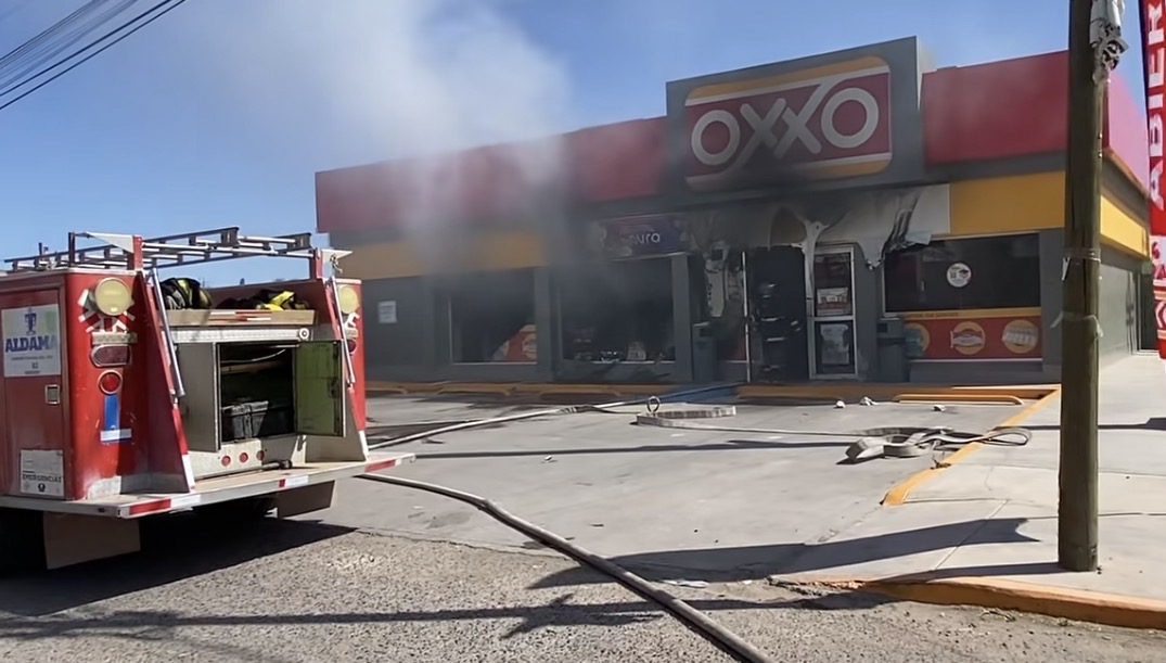 Derivado del fuerte operativo en Ojinaga, se reportaron hechos violentos en el municipio de Aldama, donde civiles armados incendiaron una tienda de conveniencia y robaron un camión de pasajeros para bloquear la carretera que conecta ambas localidades.