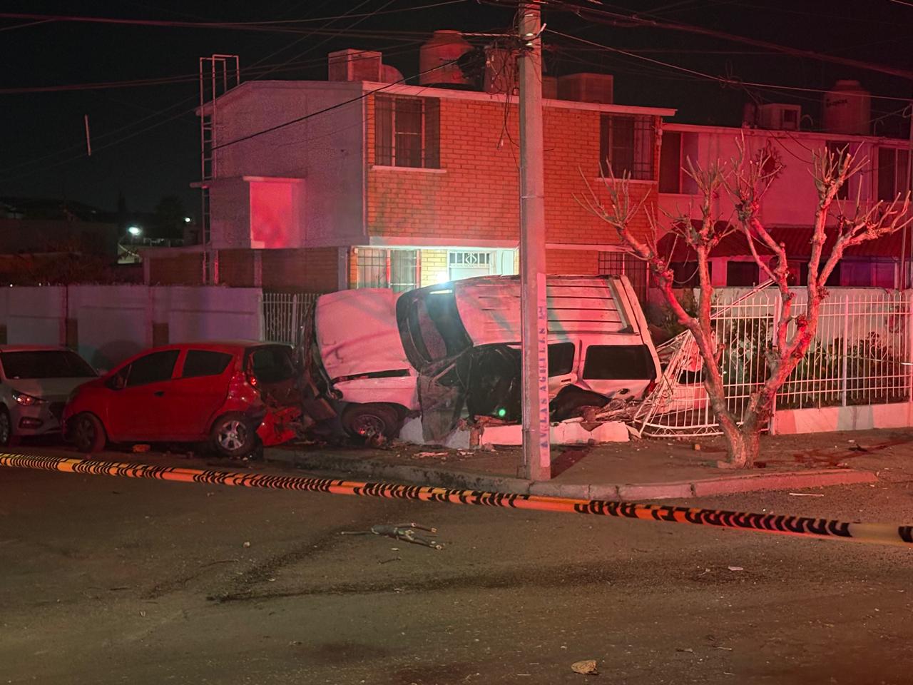 Tras cruzar hacia los carriles contrarios, la camioneta colisionó con varios automóviles y continuó su trayectoria hasta introducirse en la cochera de un domicilio. En el sitio derribó un muro y un barandal, para finalmente quedar volcada sobre vehículos que se encontraban estacionados en la vivienda, en el cruce con la calle Búho.