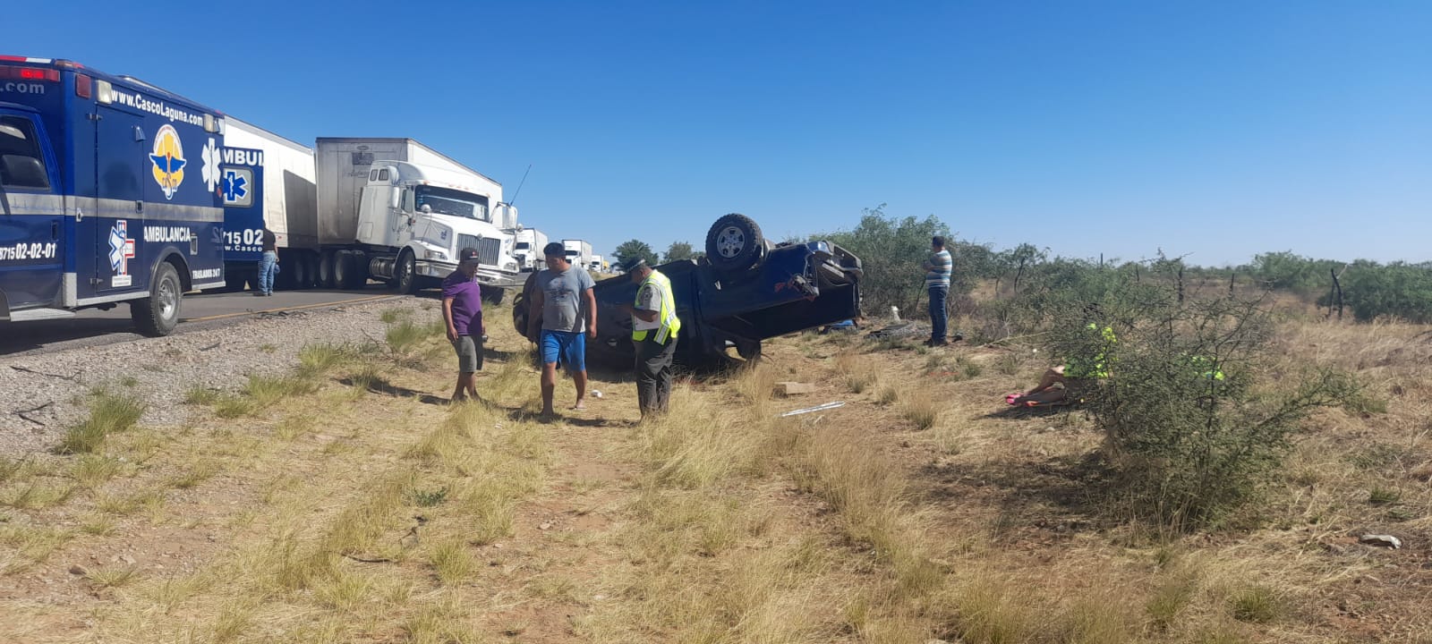 Una mujer de 57 años y dos personas más resultaron lesionadas luego de la volcadura de una pick up Chevrolet, Colorado, en el kilómetro 72 de la carretera a Ciudad Juárez.