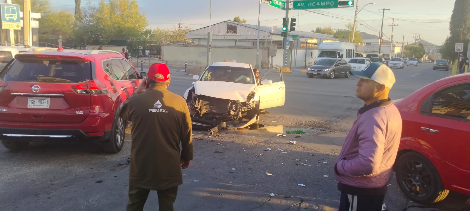 El incidente tuvo lugar en la intersección de las calles Terrazas y av. Ocampo, cuando el conductor de un vehículo Nissan Altima de color blanco omitió el alto, impactando contra un Chevrolet Aveo que circulaba por la vía principal.