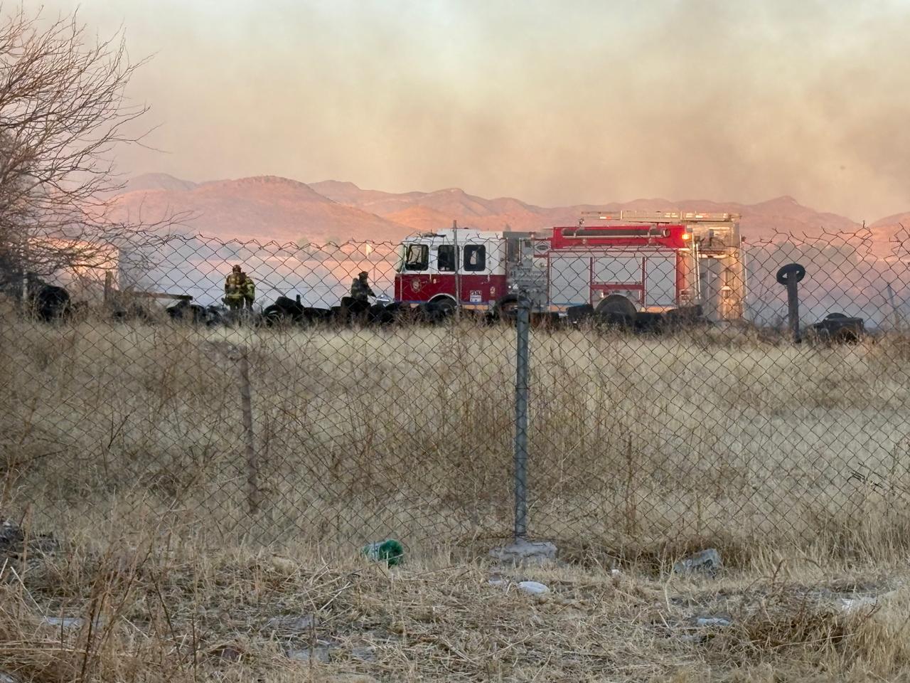 Incendio consume predio con llantas y pastizal en Sacramento