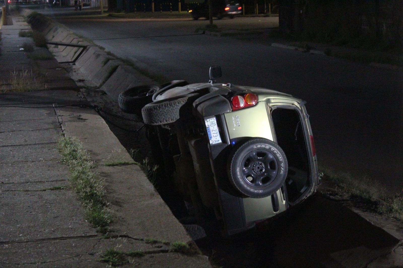 El joven conductor de una Jeep, Liberty, se quedó dormido el volante cuando circulaba en sentido de oeste a este por el bulevar Fuentes Mares y a la altura del cruce con la calle Pino Suárez volcó hacia el interior de un canal.