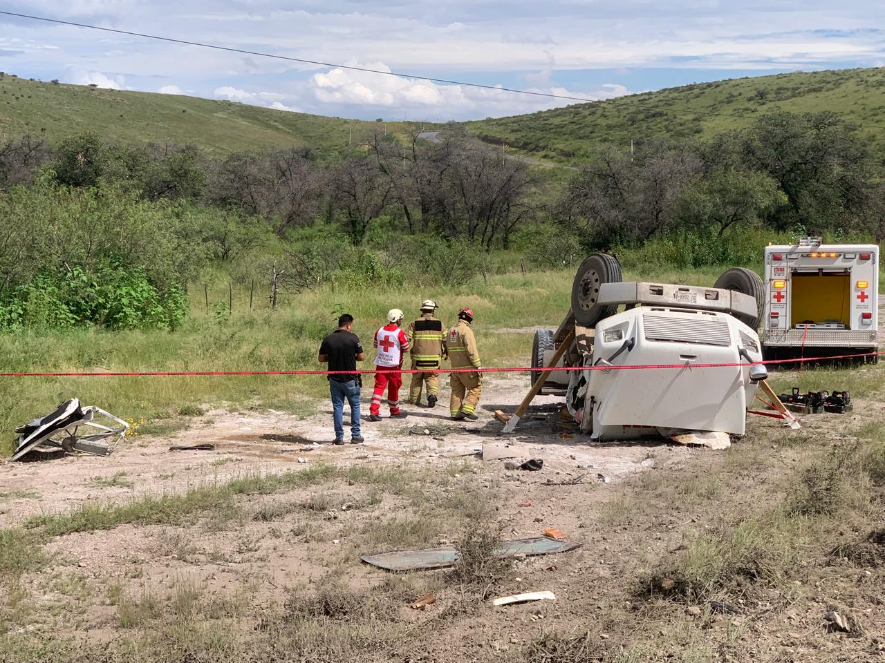 Un fatal accidente se registró la tarde de este sábado en el kilómetro 3.5 de la carretera libre a Ciudad Juárez, en el tramo conocido como las Curvas del Perico, donde un tractocamión terminó volcado fuera del camino.