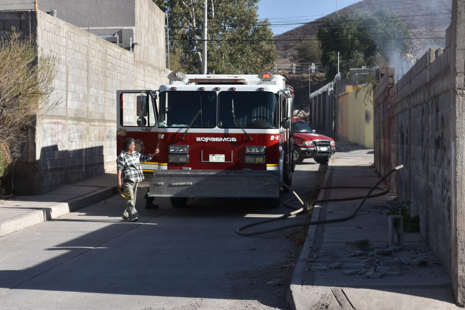 El personal se vio en la necesidad de realizar un boquete en la barda de la vivienda afectada para poder introducir una manguera y comenzar a sofocar las llamas.