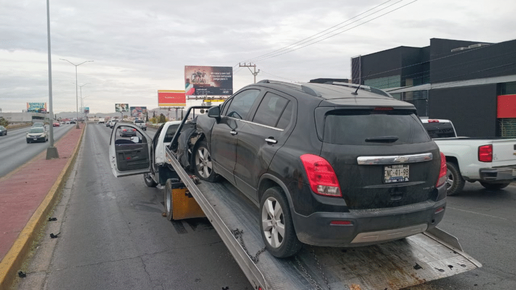 Este mediodía se registró un nuevo accidente en el Periférico de la Juventud, al norte de la ciudad de Chihuahua. Una camioneta Chevrolet color negro que circulaba de sur a norte perdió el control al pasar el puente Ignacio Rodríguez, impactándose contra la base de concreto de un poste de alumbrado público.