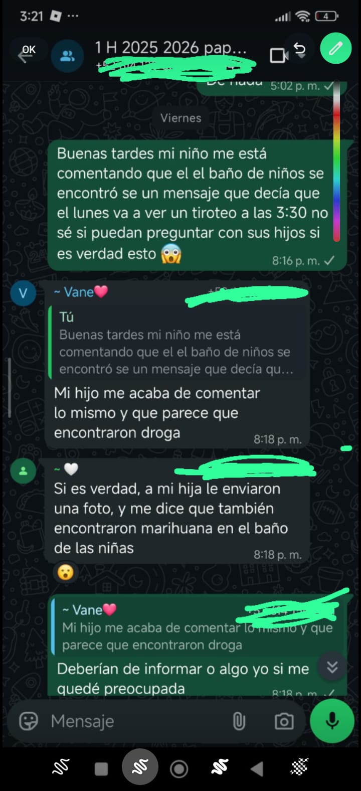 Hasta el momento, las autoridades no han emitido información oficial sobre la autenticidad de los mensajes ni sobre el alcance real de la amenaza, pero la sola aparición de estos escritos ha generado un ambiente de psicosis colectiva entre la comunidad escolar.