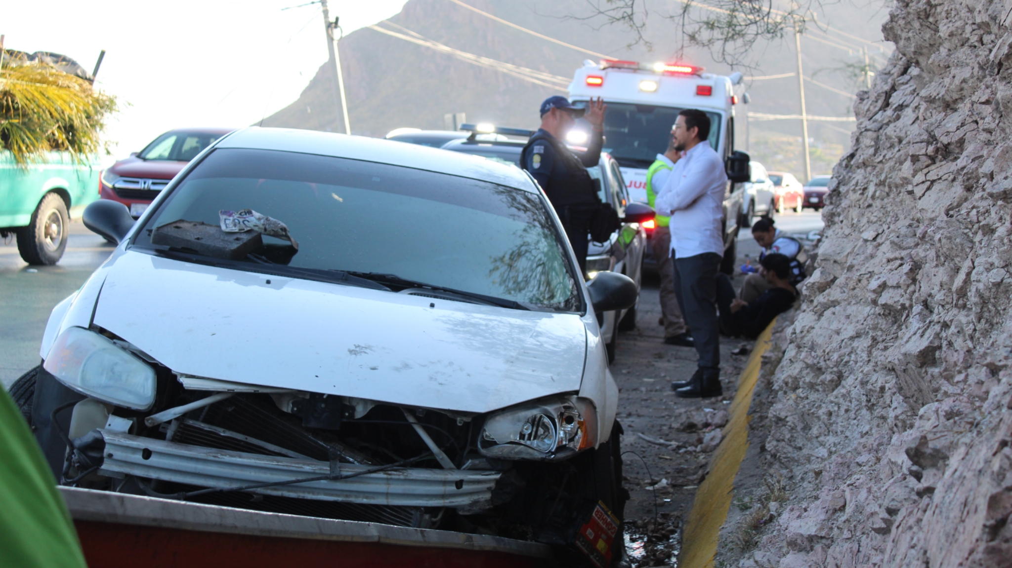 El joven conductor de un automóvil Dodge, Stratus, perdió el control a la altura del kilómetro 2+500 de la carretera Chihuahua- Aldama, y colisionó contra un cordón de concreto y posteriormente contra parte de un cerro.