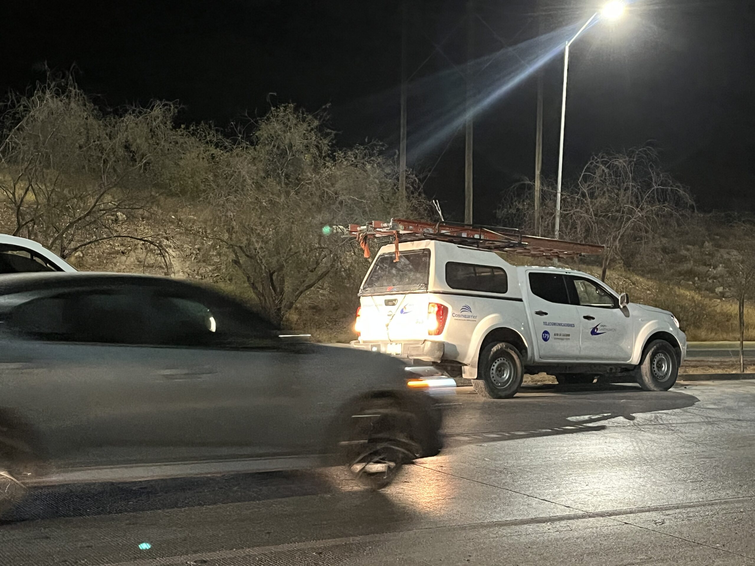 • Pickup de empresa de telecomunicaciones provoca congestionamiento en la carretera a Aldama