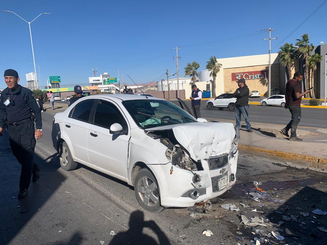 La conductora de un Chevrolet, Aveo, perdió el control en el Periférico de la Juventud, y chocó de frente contra otro vehículo similar.