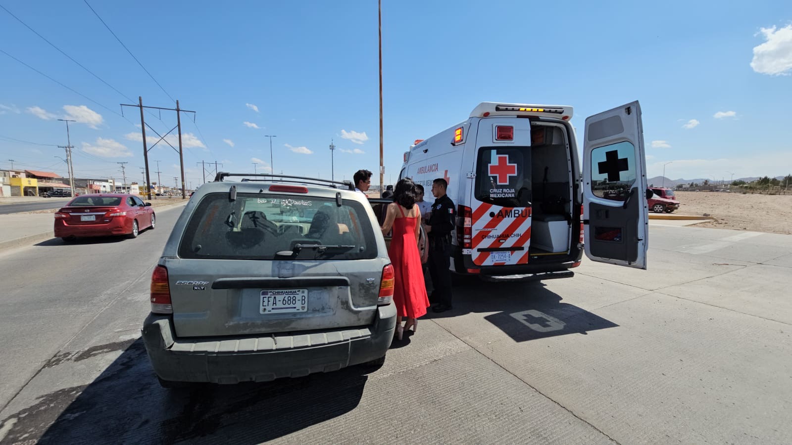 El incidente ocurrió sobre la Avenida de las Industrias, en el cruce con la calle Mina Zapori, al norte de la ciudad de Chihuahua, donde ambos vehículos estuvieron involucrados en una colisión por alcance.