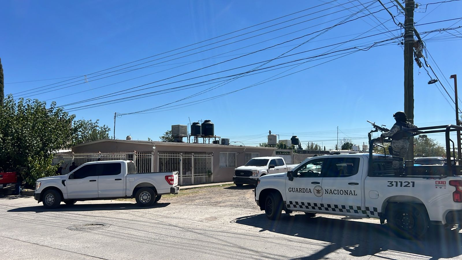 Elementos de la Agencia de Investigación, el Grupo de Homicidios, la Guardia Nacional y la Unidad de Especialización en Crimen e Inteligencia Municipal llevan a cabo un cateo en una vivienda ubicada en las calles Tierra y Libertad y Ciudad Camargo, en la colonia Revolución de Chihuahua.