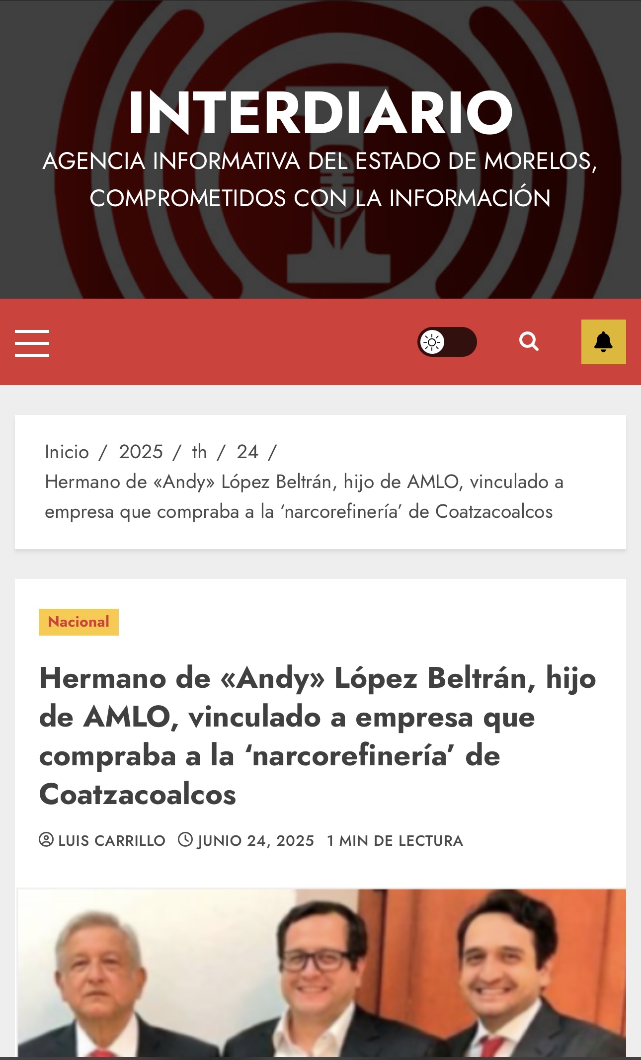 La agencia informativa INTERDIARIO publicó el día de ayer 24 de junio [ Hermano de “Andy” López Beltrán hijo de AMLO, vinculado a empresa que compra a la “narcorefinería” de Coatzacoalcos