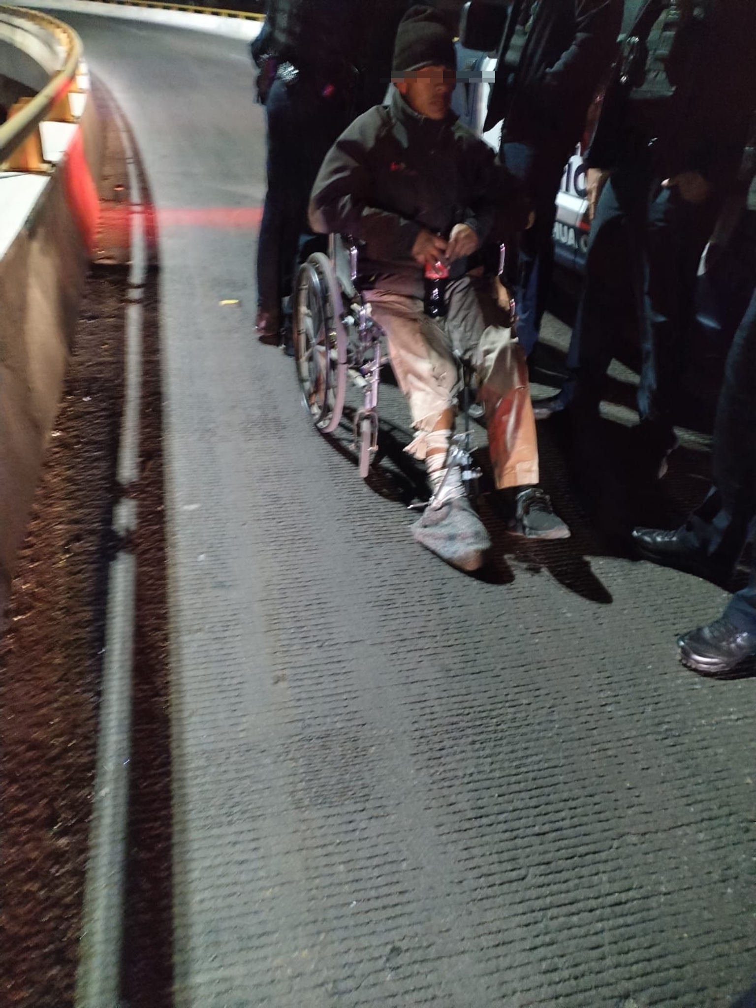 A la medianoche del viernes 12 de diciembre, un elemento de la Policía Municipal rescató a un ciudadano discapacitado, quien en silla de ruedas pretendía cruzar la barrera de contención en la avenida Teófilo Borunda y Sacramento.