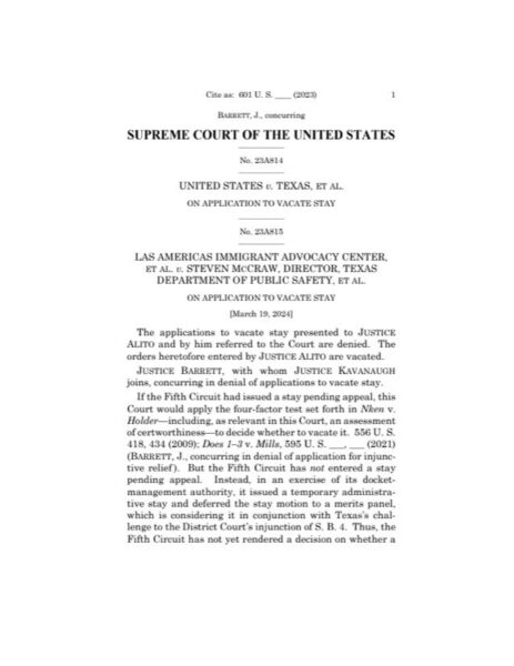 Tribunal Supremo de Justicia de Estados Unidos se ha pronunciado a favor del estado de Texas, permitiéndole la entrada en vigor de una ley que autoriza a la policía a detener y expulsar a migrantes sospechosos de ingresar de forma irregular al país.