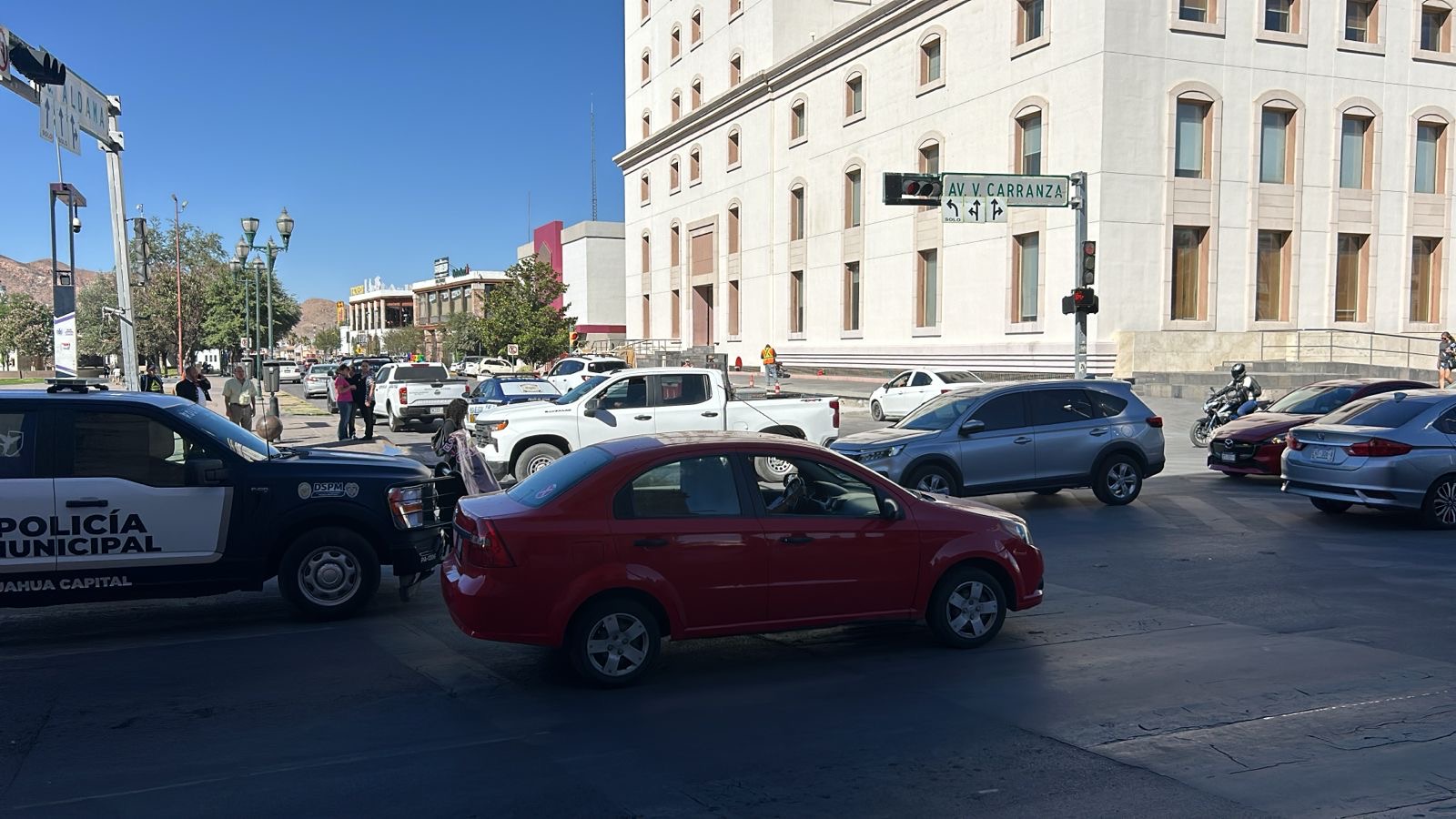 La acción detuvo el tráfico. Solicitaba a las autoridades el esclarecimiento de la muerte de su padre, Cecilio Caro Jáquez, quien murió en un suceso violento en la carretera a Delicias, a la altura del kilómetro 196.