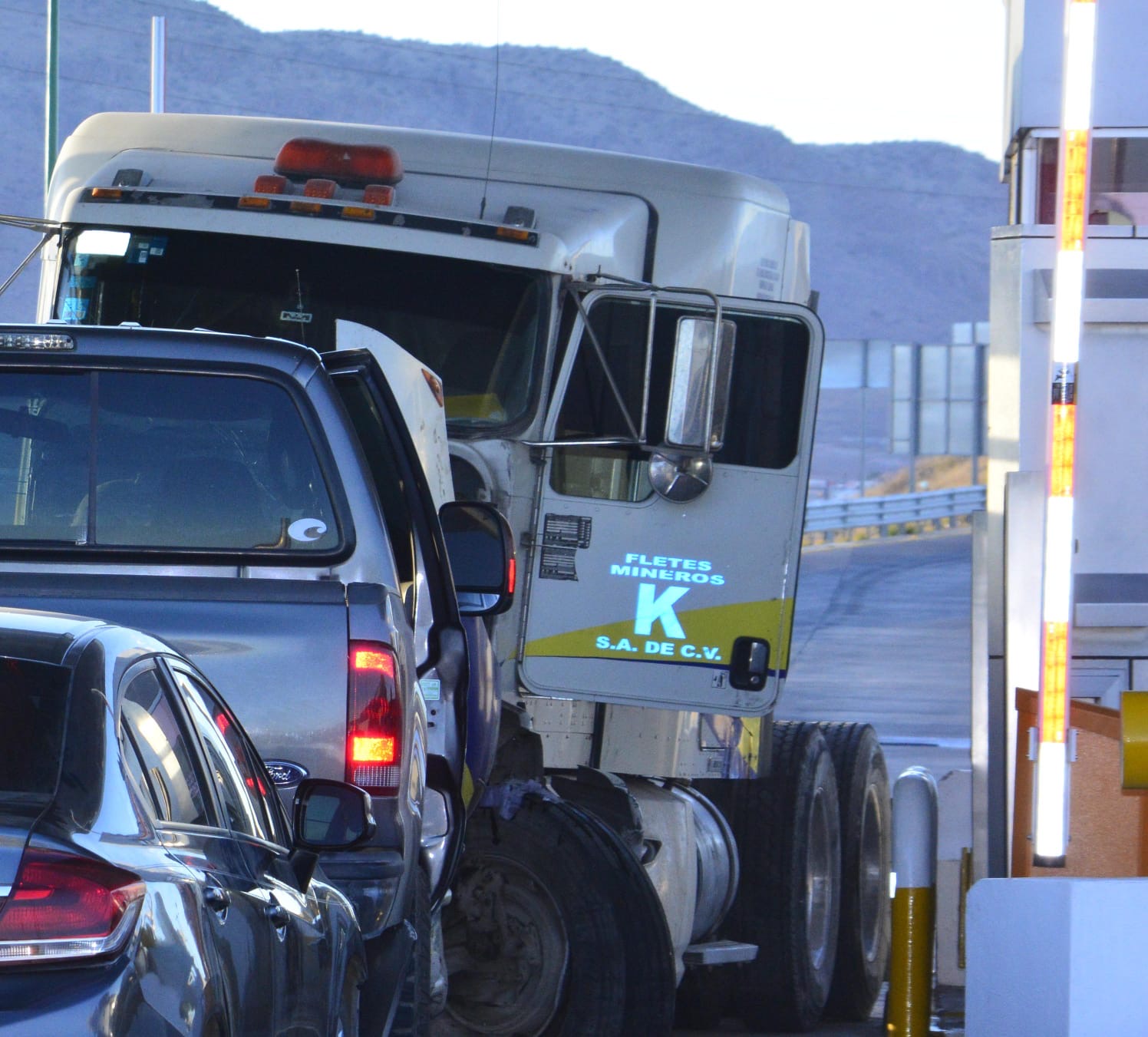 El conductor de un tráiler de la empresa Fletes Mineros K, chocó de frente contra una pick up en la caseta del Libramiento Oriente al quedarse su vehículo sin frenos.