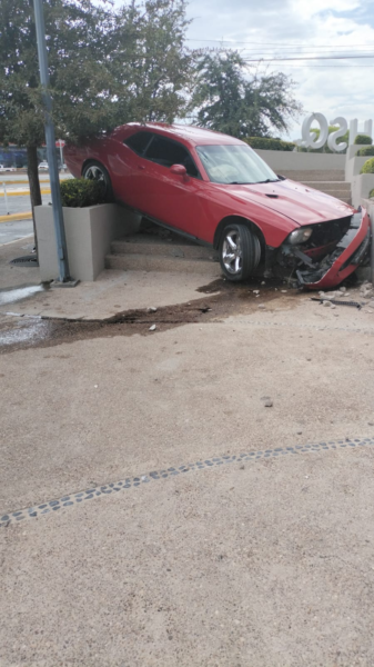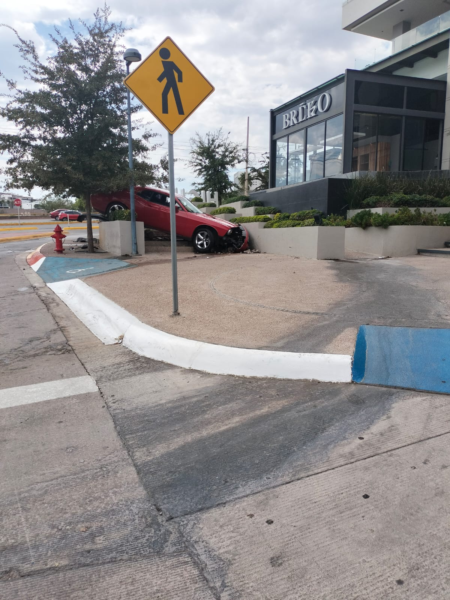 En una escena sorprendente que tuvo lugar durante la tarde de este lunes, un carro deportivo de la marca Dodge Challenger dejó a los transeúntes atónitos al subirse a la acera y quedar estacionado en la puerta de un local comercial en Plaza Cumbres, Hacienda los Morales, Chihuahua.