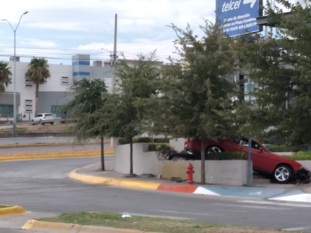 El accidente ocurrió en la lateral del Periférico de la Juventud, generando una conmoción momentánea en la zona. Según informes preliminares proporcionados por testigos presenciales, el vehículo Dodge Challenger se salió de control y se elevó sobre la acera antes de detenerse justo en la entrada de un negocio en Plaza Cumbres.
