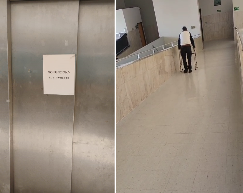 En un video compartido por los afectados, se puede observar a un adulto mayor descendiendo con dificultad por la rampa usando un andador, lo que refleja el riesgo y el esfuerzo que deben hacer los pacientes para moverse dentro de las instalaciones. Además, familiares que acompañan a personas en sillas de ruedas reportan que empujar las sillas por la rampa es complicado y peligroso, especialmente para quienes no tienen ayuda.