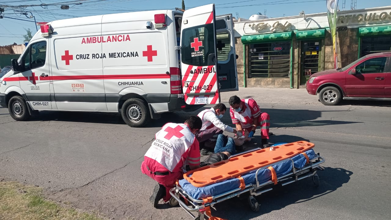 Un joven de entre 20 y 25 años resultó gravemente herido tras ser atropellado por una conductora en la intersección de las calles J. Morón y Ángela Peralta, en la colonia Cuarteles, frente al Batallón de la Quinta Zona Militar.