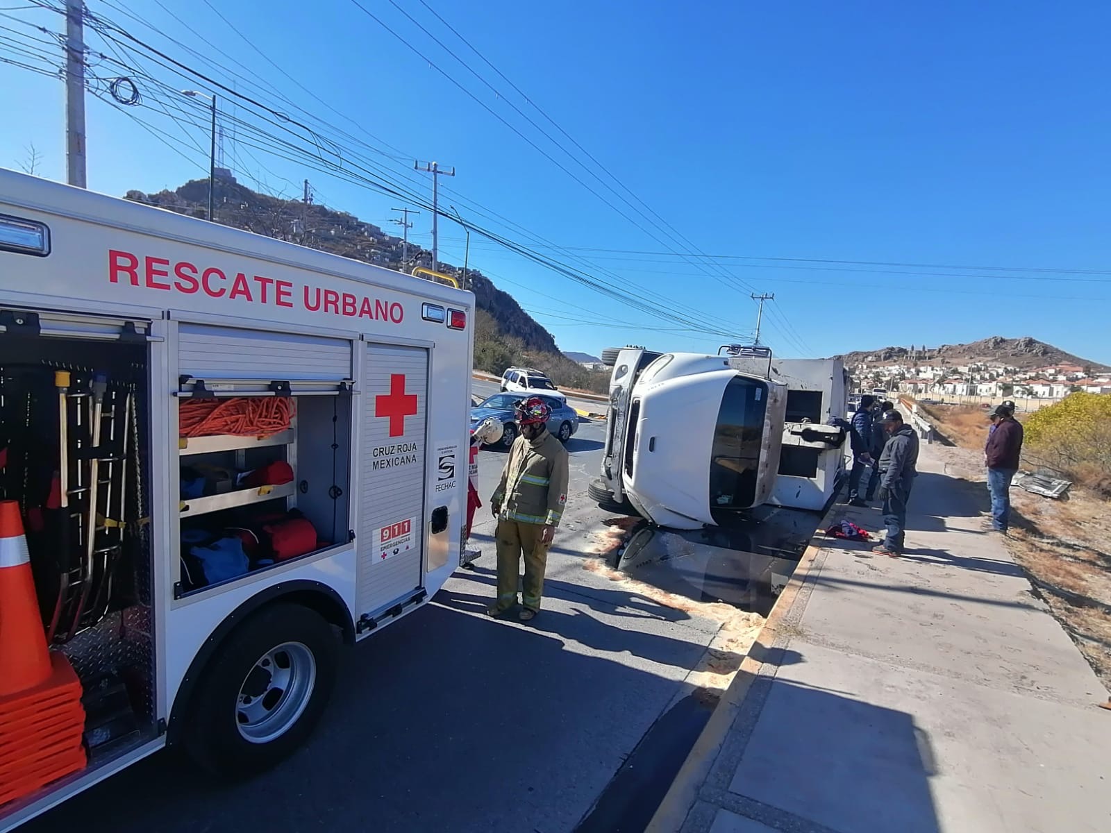 Lo anterior, luego de que el pesado vehículo iba en descenso por la calle Centauro del Norte, cuando el conductor se percató de una falla en los frenos, ante esto y tras maniobrar para evitar un accidente con algún otro vehículo, el camión terminó por volcar sobre la avenida Teófilo Borunda.