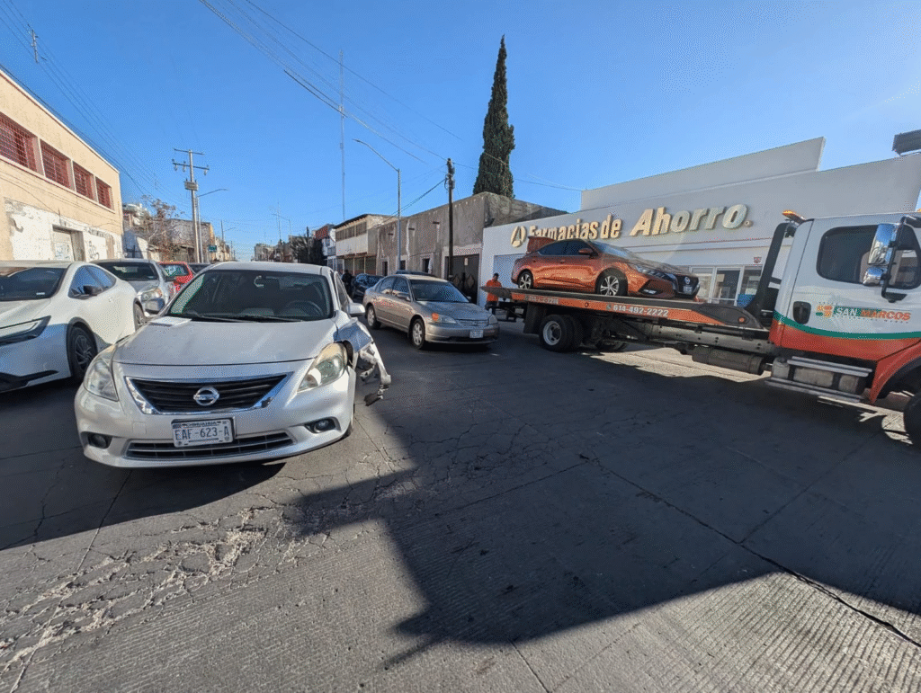 De acuerdo con testigos, ambos vehículos circulaban de este a oeste sobre Guadalupe Victoria cuando el Sentra, un modelo reciente, colisionó lateralmente contra el Versa. El golpe fue tan fuerte que el Sentra perdió el control, giró varias veces y terminó invertido frente a las instalaciones de Farmacias del Ahorro. El Versa, en cambio, solo presentó daños visibles en su costado, sin volcar.