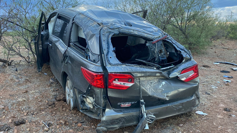Una camioneta Honda, Odyssey, volcó en el kilómetro 50 de la carretera Ciudad Juárez- Chihuahua.