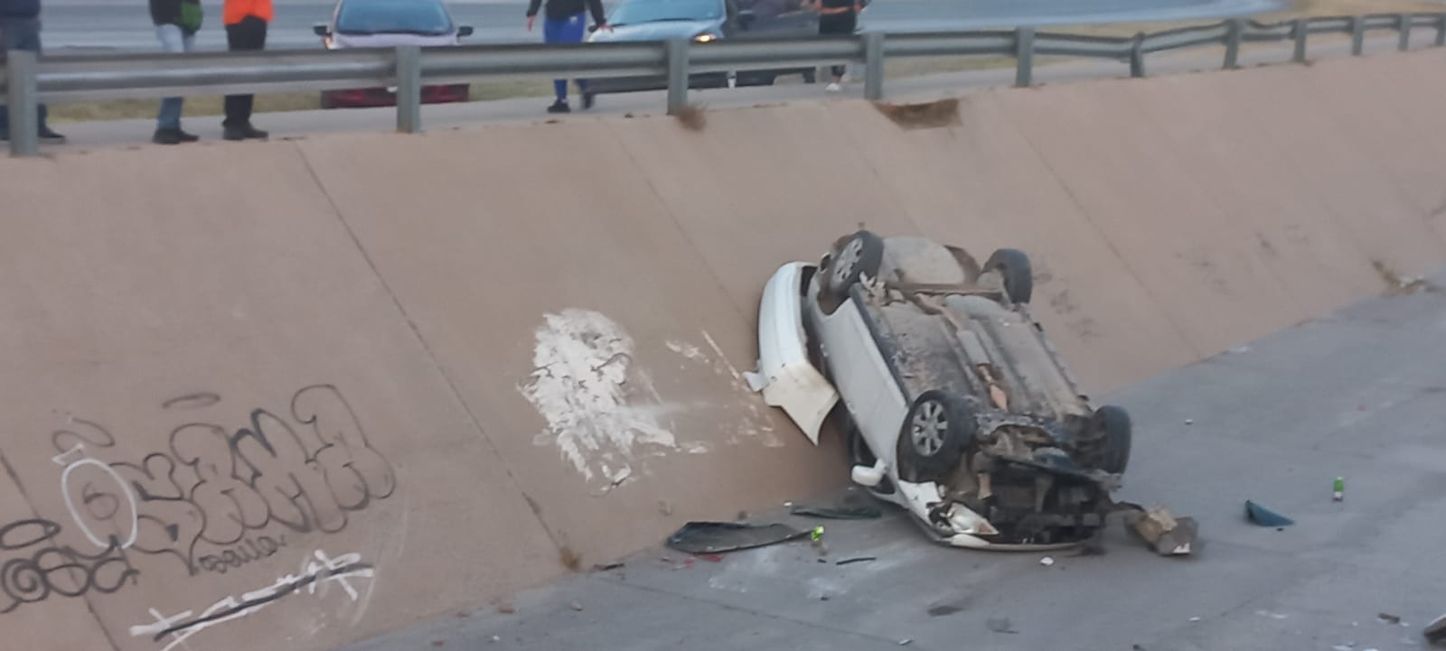 El conductor de un automóvil, Nissan, Tiida, perdió el control y volcó al interior de un canal, tras tomar una curva a exceso sobre la Vialidad Los Nogales y casi Sosa Vera, al norte de la ciudad de Chihuahua.